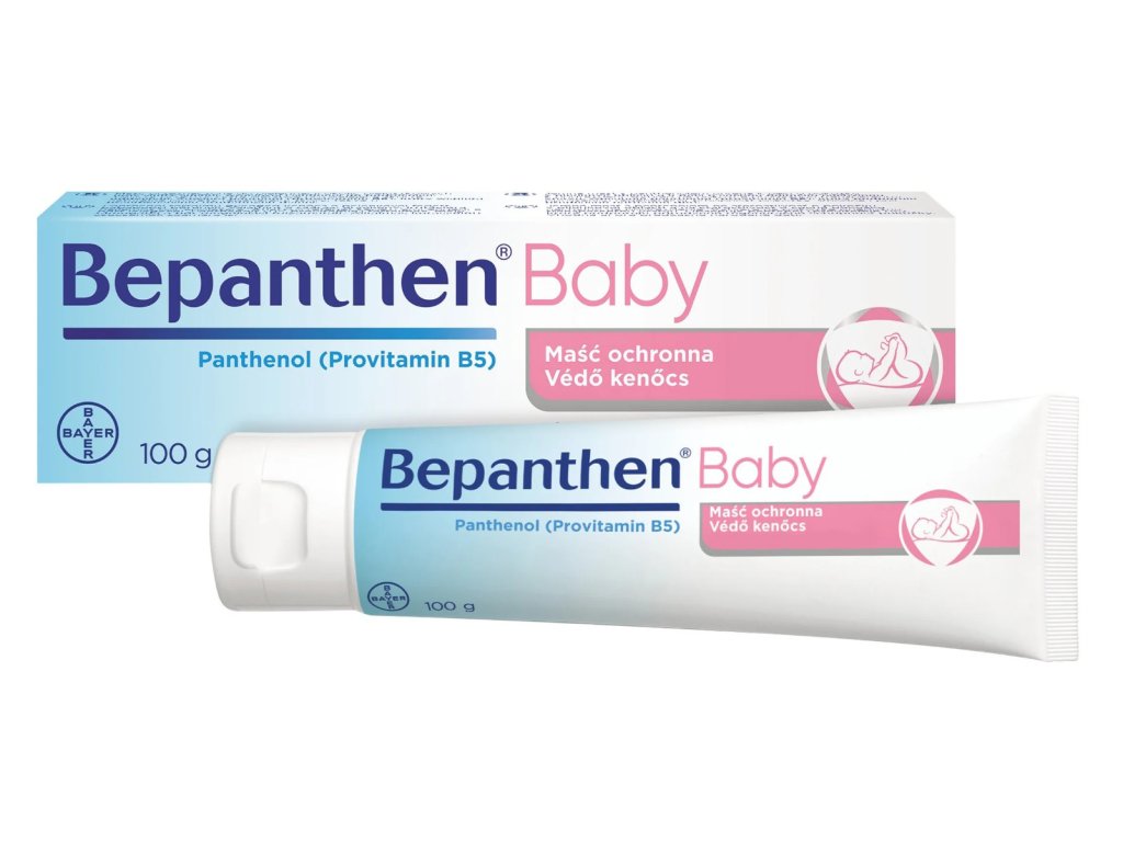 Bepanthen Baby je určený na každodennú starostlivosť o pokožku v plienkovej oblasti, pomáha ju chrániť pred vznikom zaparenín. Obsahuje panthenol (provitamin B5), ktorý prispieva k obnove prirodzenej ochrannej bariéry citlivej pokožky a udržuje ju jemnú, pružnú a hydratovanú. Masť, ktorá sa naozaj ľahko rozotiera, môžete ju používať už od narodenia pri každej výmene plienky, pretože je bez zinku, parfumácie, konzervantov, dezinfekčných látok, farbív a iných dráždidiel.
