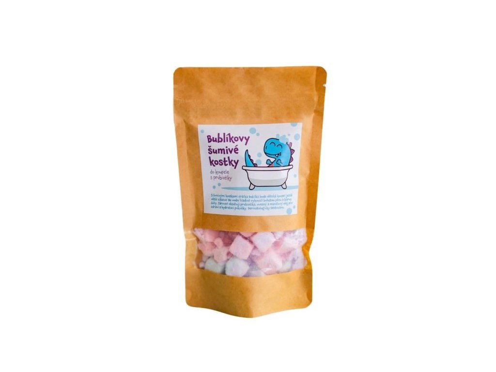 So šumivými kockami dráčika Bublíka bude detský kúpeľ ešte väčšia zábava! Na vodnej hladine vykúzli bohatú penu a farby dúhy. Zároveň obsahuje probiotiká, ovsený a mandľový olej pre zdravie kožného mikrobiomu a hydratáciu pokožky. Navyše šumivá bomba vonia po sladkom hrozne.