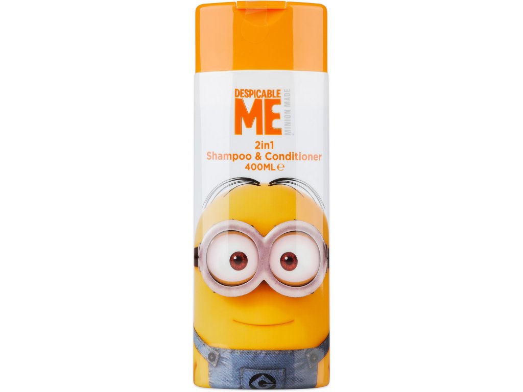 2v1 šampón a kondicionér Ja, zloduch jemne čistí, aby zaistil zdravý vzhľad vlasov a pokožky hlavy. Spríjemnite umývanie vlasov svojím malým ratolestiam obľúbenou postavičkou Mimonom. Prevoňajte vlasy vašich detí príjemnou sladkou vôňou. Vďaka špeciálnej zložke jemne a dokonale čistí a zároveň vyživuje pokožku hlavy, ktorú nevysušuje. Je vhodný pre deti od 3 rokov.