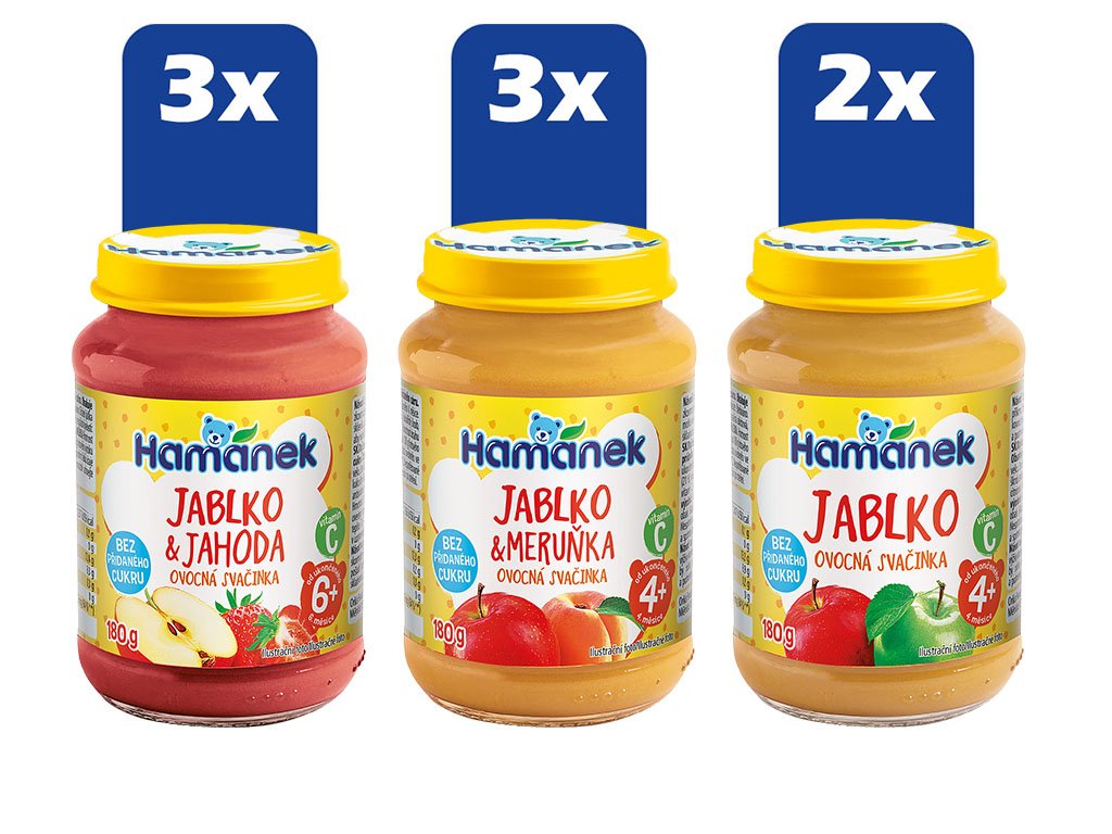 - 3 x Hamánek Jablko a marhuľa nesladené - 180 g - vhodné od ukončeného 4. mesiaca