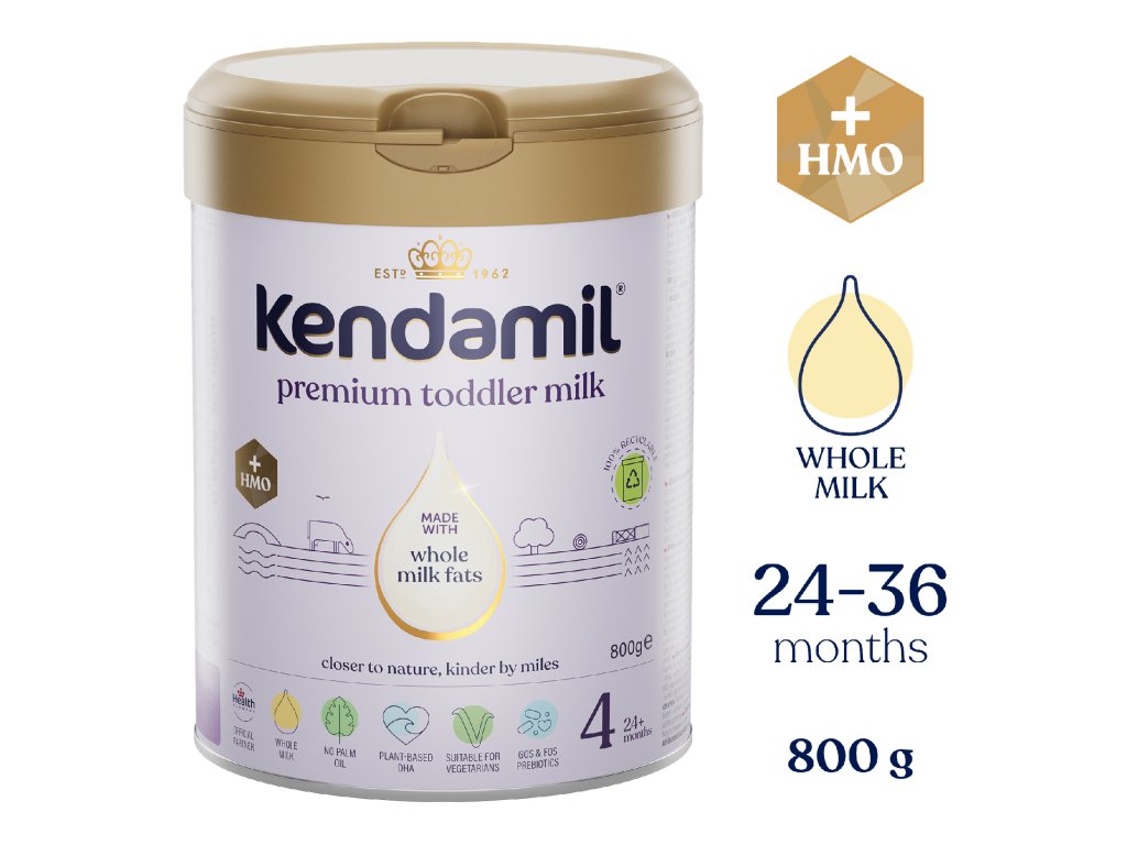 Dôležité upozornenie: Dojčenie je najlepším spôsobom výživy vášho dieťaťa. KENDAMIL PREMIUM 4 HMO+ je určené pre výživu malých detí od ukončeného 24. mesiaca a malo by tvroiť iba súčasť zmiešanej a vyváženej stravy malého dieťaťa. Pri kŕmení z flaštičky, zamedzte nepotrebnému predlžovaniu kontaktu cumlíka so zúbkami, zvyšujete tým riziko zubného kazu. Starajte sa o hygienu ústnej dutiny dieťaťa, predovšetkým pred spaním. Dodržujte pokyny na prípravu, kŕmenie a skladovanie, inak ohrozíte zdravie dieťaťa. Nie je určené pre deti do 12 mesiacov.