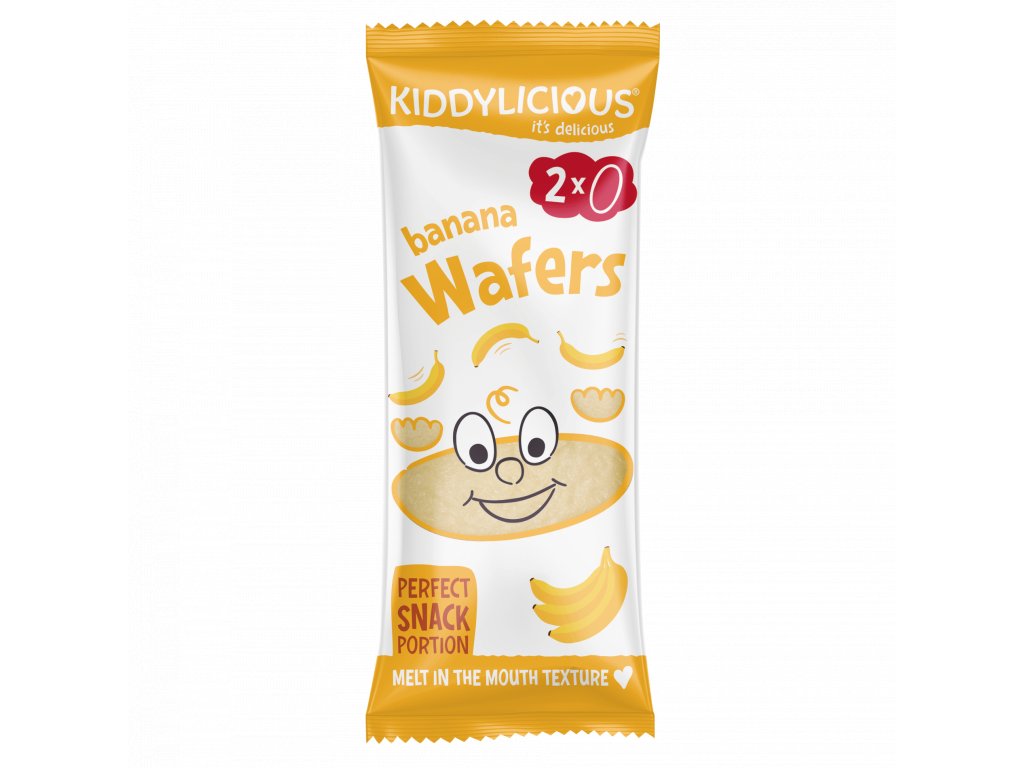 Ryžové oplátky Kiddylicious jemne ochutené pravými banánmi (skutočným ovocím) sú vhodnou prvou desiatou do ruky. Majú ideálny tvar a veľkosť do detskej ručičky. Vďaka hladkej textúre nedrobí, ihneď sa rozpúšťa v ústach a uľaví ďasnám od bolesti spojenej s rastom zúbkov. Neobsahujú lepok, mlieko, konzervačné látky, vajcia, orechy a semienka. Sú vhodné pre deti od šiestich mesiacov. Krabička obsahuje 4 malé ľahké vrecká s oplátkami, čo je výhodou, pretože to dieťaťu nedovolí zjesť toho zbytočne veľa a zároveň sa zmestia naozaj kamkoľvek (do každej tašky na kočíku, či detských batôžkov na prvé prechádzky).