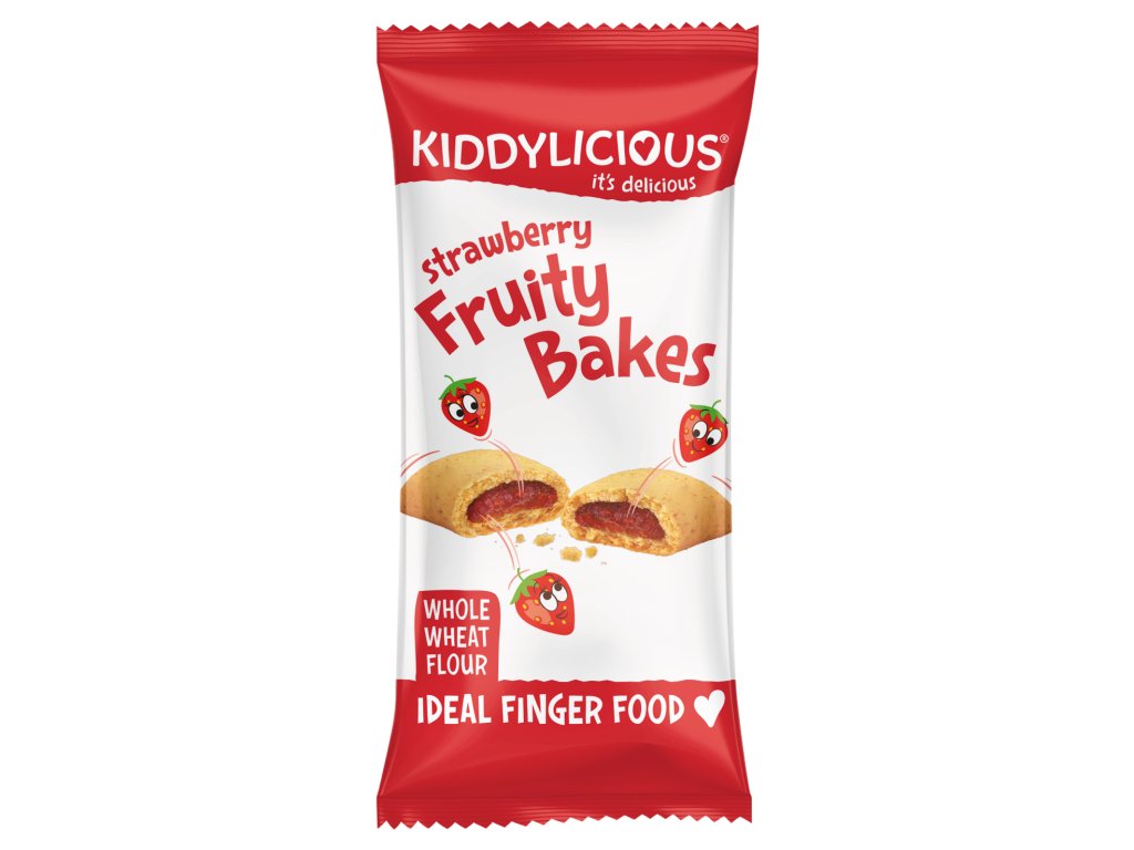 Do zlatista pečené ovocné koláčiky Kiddylicious sú vyrobené z celozrnnej pšeničnej múky so skutočnou ovocnou náplňou – jahodovou. Lahodné koláčiky sú mäkké a neobsahujú žiadny pridaný cukor. Deti im s obľubou často hovoria štrúdľ. Sú vhodné pre deti od ukončeného 12. mesiaca. Neobsahujú umelé príchute a farbivá, pridanú soľ, či konzervačné látky. V krabičke nájdete 6 malých a ľahkých balení, čo je perfektné, pretože dieťaťu to nedovolí zjesť toho zbytočne veľa a zároveň sa zmestia naozaj kamkoľvek (do každej tašky na kočíku, či detských batôžkov na prvé prechádzky).