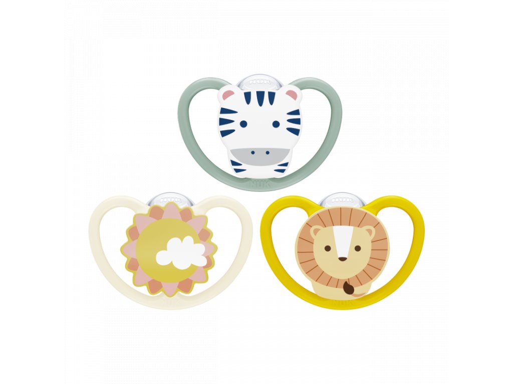 Vďaka unikátnemu dizajnu s extra veľkými otvormi je cumlík NUK Space nielen šetrný k pokožke, ale aj skvele vyzerá a je k dispozícii v mnohých prevedeniach.