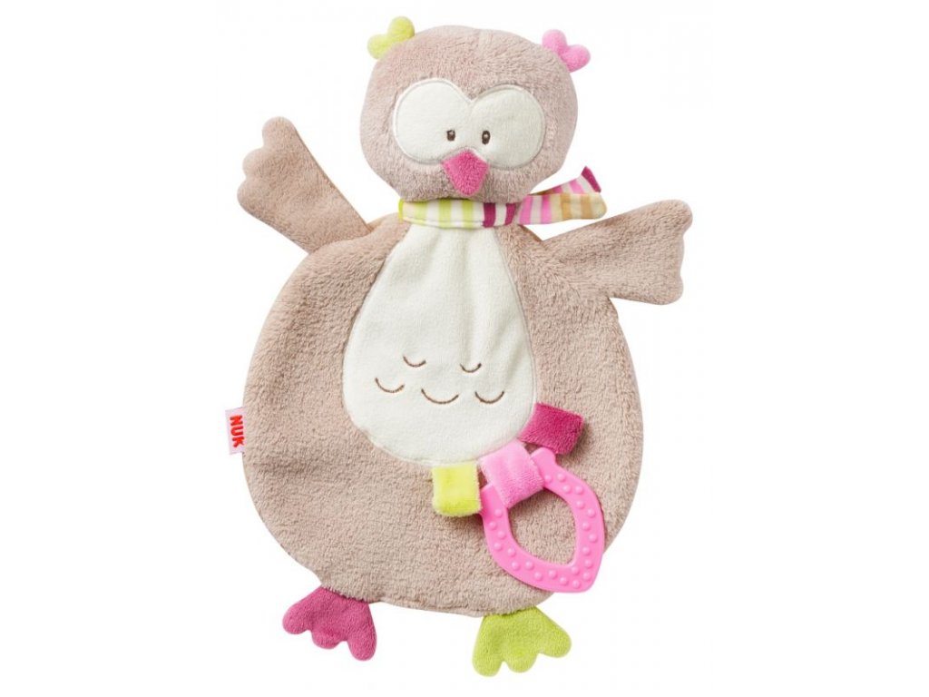 Detská plyšová dečka NUK Sovička je veselá a hebká hračka v krásnych farbách, ktorá vďaka zabudovanému praktickému hryzátku pomáha pri prerezávaní prvých zúbkov bábätka. Okrem toho podporuje u detí vývoj hmatu, pretože sú na dečke rôzne povrchy, textílie a látkové nášivky. Hračka je vyrobená z príjemného materiálu - polyesteru. Roztomilý maznáčik Sovička sa tak iste stane nerozlučným kamarátom Vášho dieťatka. Vhodná pre deti od narodenia.