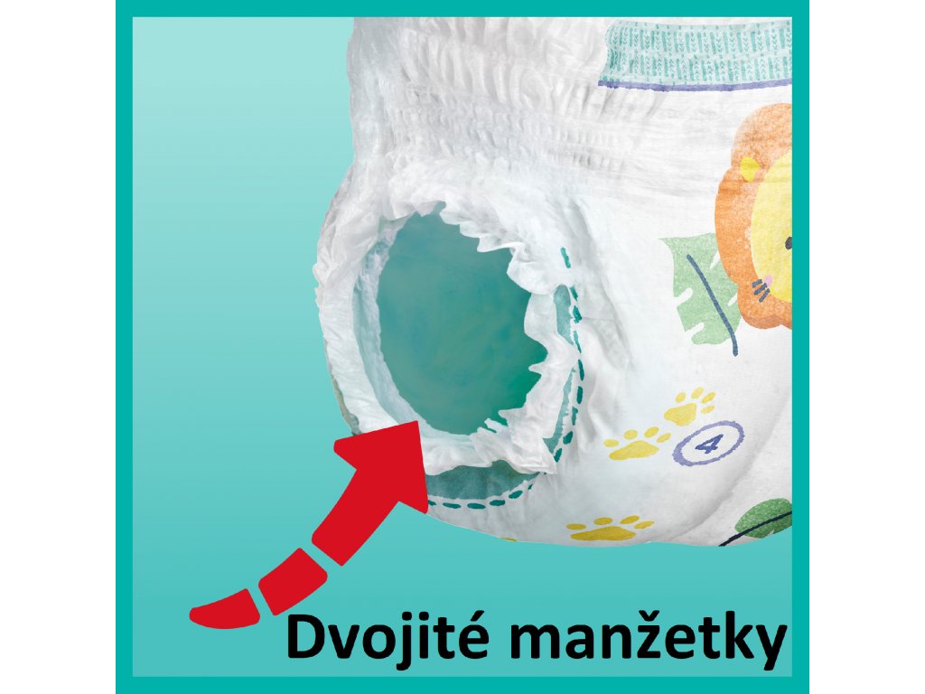 Plienkové nohavičky Pampers navrhnuté pre aktívne deti sú perfektné, keď sú deti zvedavé a pri prebaľovaní sa vám stále otáčajú alebo plazí preč, pretože ich nemusíte zapínať, alebo keď ich chcete začať učiť chodiť na nočník a zvykať si na spodnú bielizeň. Plienkové nohavičky s pohodlným pružným pásom pre 12-hodinový pocit sucha sa ľahko naťahujú a poskytujú deťom slobodu a pohodlie. Absorpčné kanáliky rýchlo odvádzajú tekutinu od pokožky do jadra plienky. Dvojité manžetky okolo nožičiek poskytujú skvelú ochranu proti pretečeniu.
