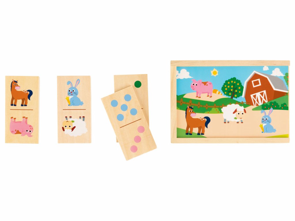 - Z jednej strany doštičiek sú obrázky (prasiatko, ker, koník, ovečka, králiček), z druhej strany sú farebné bodky (1-5)