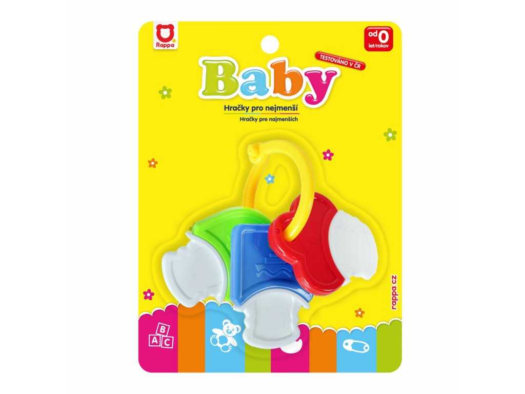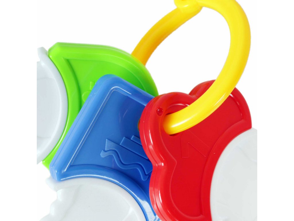 Veselá hrkálka s tromi plastovými príveskami kľúčmi je určená pre tých najmenších. Tento praktický kúsok navyše rozvíja motorické a zrakové schopnosti dieťatka. Bábätká často používajú kľúče ako hryzátka.