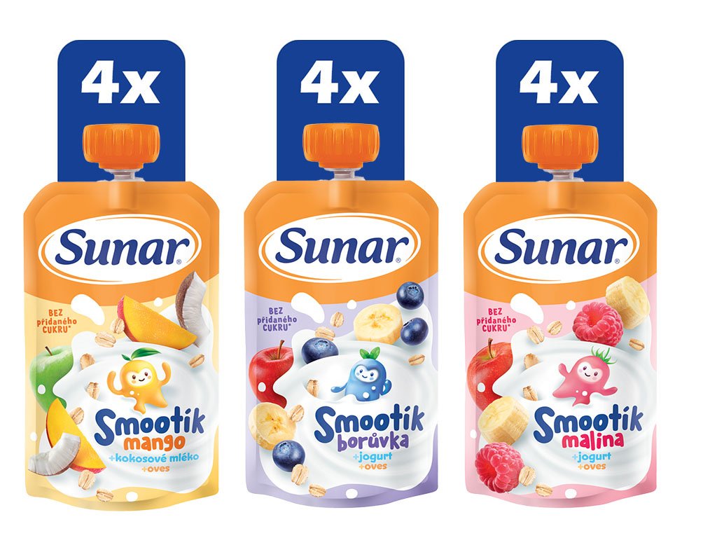 Zloženie Smootík malina, jogurt, ovos: zmes ovocia 59 % (jablkové pyré 39 %, banánové pyré 12 %, malinové pyré 8 %), pitná voda, jogurt 12 %, ovsené vločky 5 %, smotana, citrónová šťava z koncentrátu.
