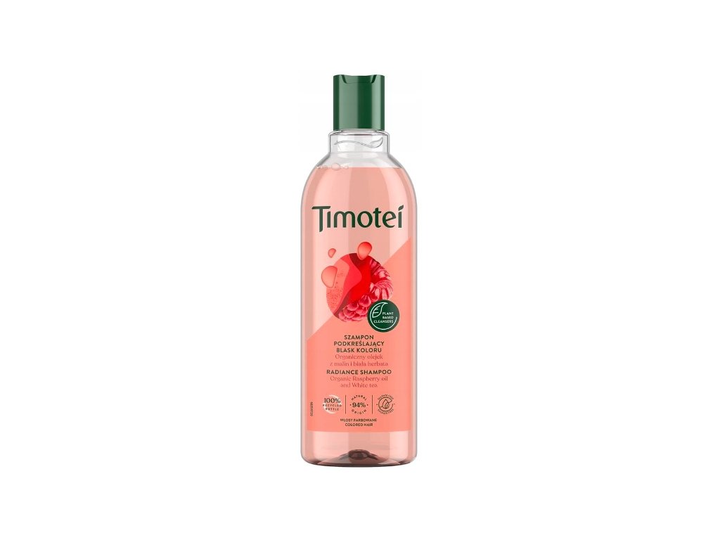 Šampón na farbené vlasy Timotei s organickým olejom z malinových semienok a extraktom z bieleho čaju jemne čistí a vyživuje farbené vlasy a dodáva im živú farbu. Navyše má príjemnú ovocnú vôňu. Vhodný na každodenné použitie. Balenie s objemom 400 ml.